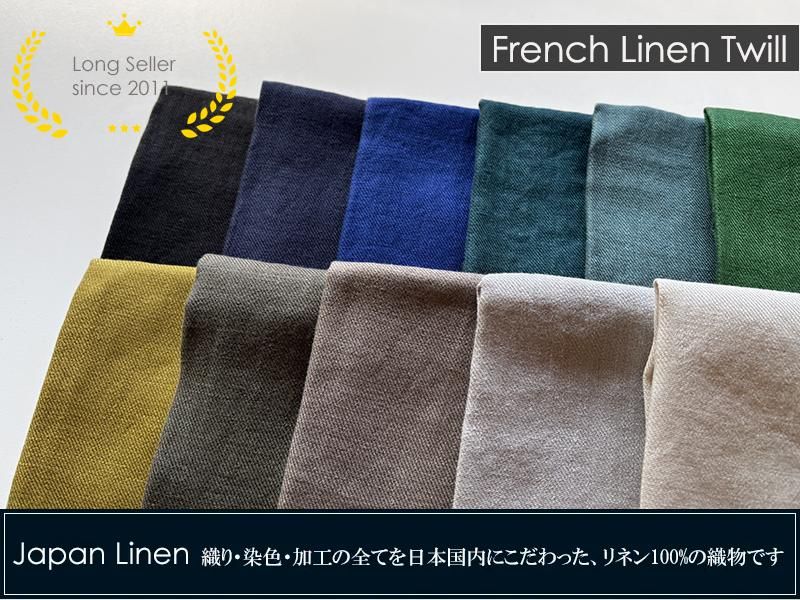 フランス産の麻から紡ぎ出されたリネン糸で織られた、綾織(ツイル)のリネン生地です。