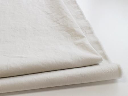 生地に触れると、ふっくらとした軽い膨らみ、洗いざらし感があり、天然繊維のナチュラルな雰囲気のある生地です。