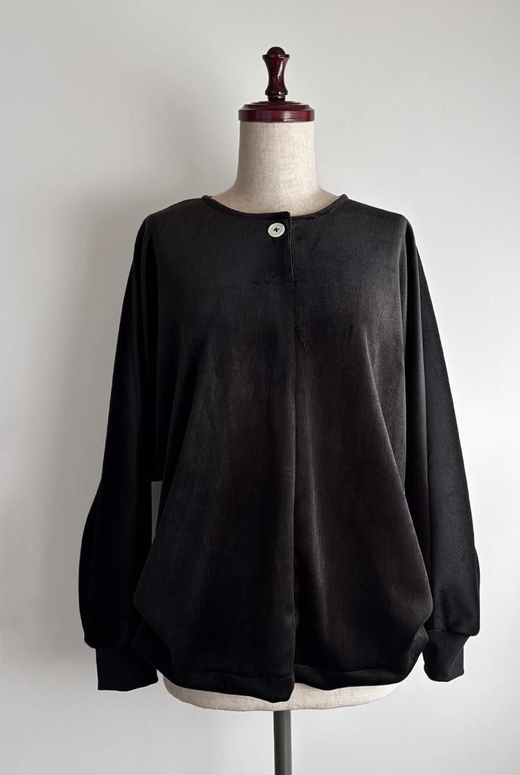 コーデュロイ裏フリース ブラック 約150cm幅×1.5m使用【一方向裁断】