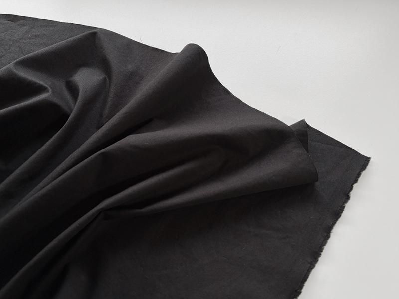 強くなり過ぎない適度なハリがあります。 適度なハリを持ちつつ、ソフトな風合いを兼ね備えている点は、この生地の大きな特徴です。 適度なハリは、完成作品のシルエットをキープしてくれ、仕立て映えします。