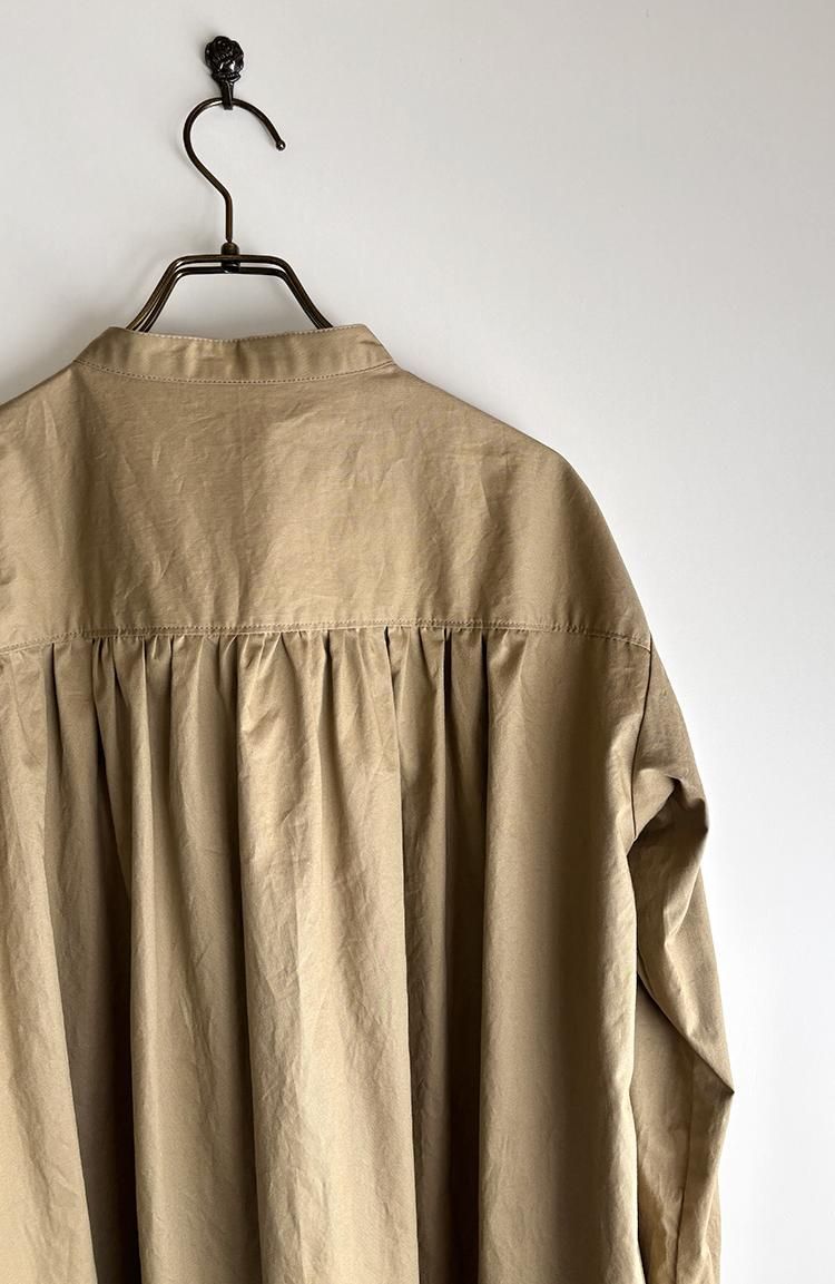 後ギャザーシャツワンピ