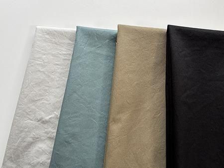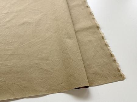 この加工を施す事により、洗いざらしのナチュラルな表面感を持ち、空気を含んだような柔らかさも残る生地に仕上がります。