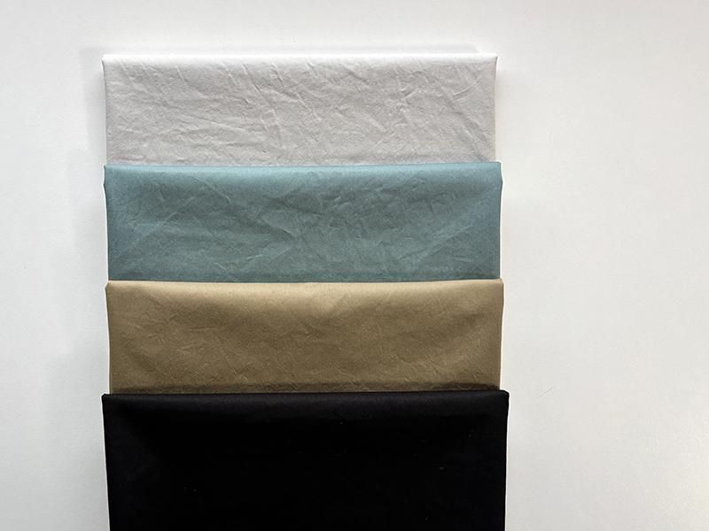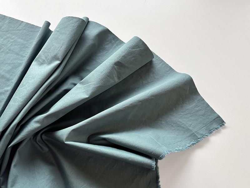 一般的に高密度に織られた生地は、多少「ツヤ」がある事が多いです。 この生地も、かすかな「ツヤ」があります。「ツヤあるかな?」程度の、とても軽いものです。