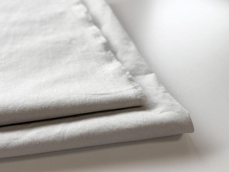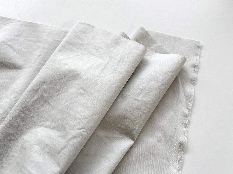 この加工を施す事により、洗いざらしのナチュラルな表面感を持ち、空気を含んだような柔らかさも残る生地に仕上がります。