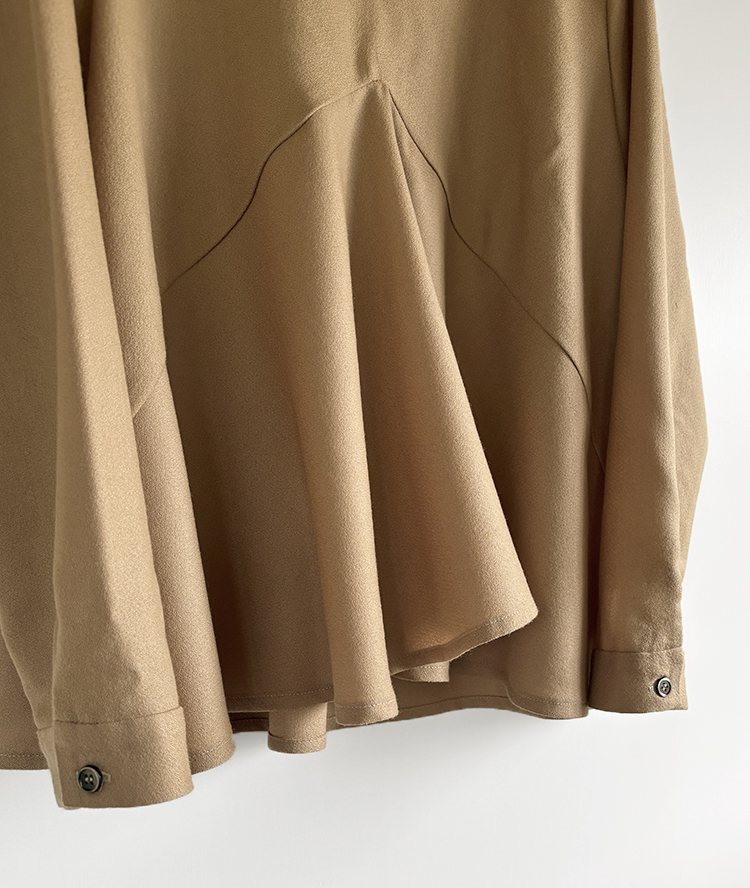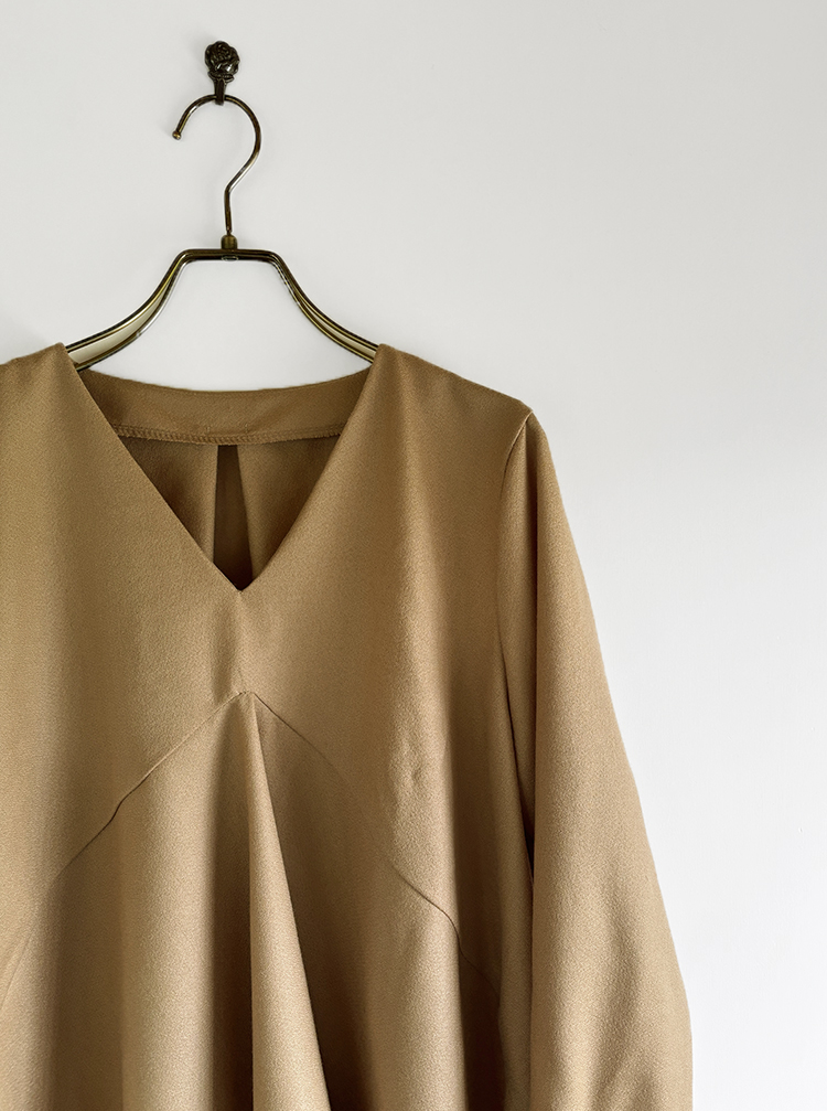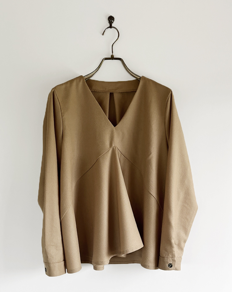ドレーピーブラウス ドレーピーブラウスパターン:aviver paper patternsさんのドレーピーブラウス・L~LLサイズで製作、スープルウール ミドルベージュ(約145cm幅)×1.6m使用・ボタン:黒蝶貝ボタン 4H 13mm×2個 2026-04-11 投稿先 ブラウス ← 過去の投稿へ 次の投稿へ →